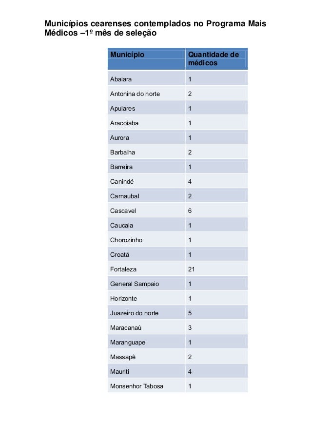 na primeira chamada do Programa Mais Médicos, divulgada,pelo Ministério